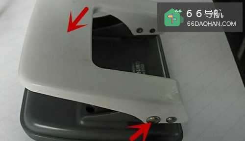 2右手拉住如图箭头的金属钉,左手轻轻压住压把,当压于一定的行程时,即可打开打孔机。