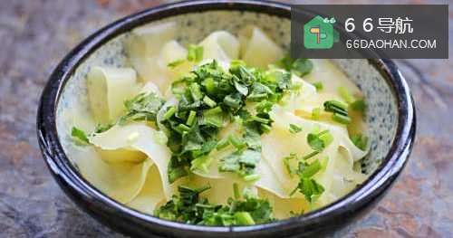 6香菜和香葱洗净后用淡盐水浸泡片刻再次冲洗干净后切碎,放进土豆片中。