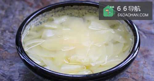 3这是削好的土豆片,用清水反复冲洗几遍,把土豆片表面的淀粉冲洗干净。