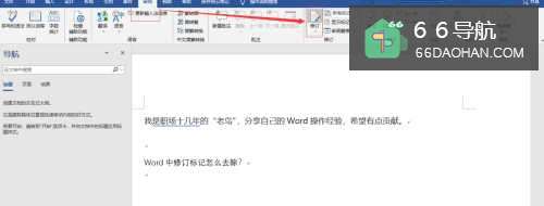 2点击“审阅”菜单,再点击“修订”,此时将文档设置为修订桩体。