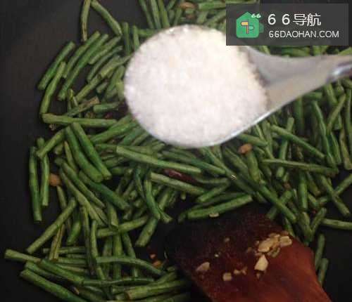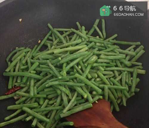 5放入焯熟的豇豆,大火翻炒1分钟,加入适量的盐。