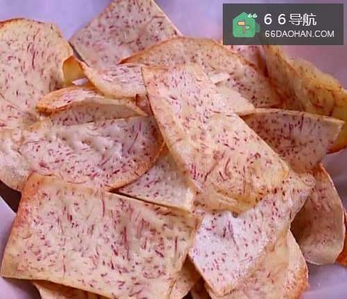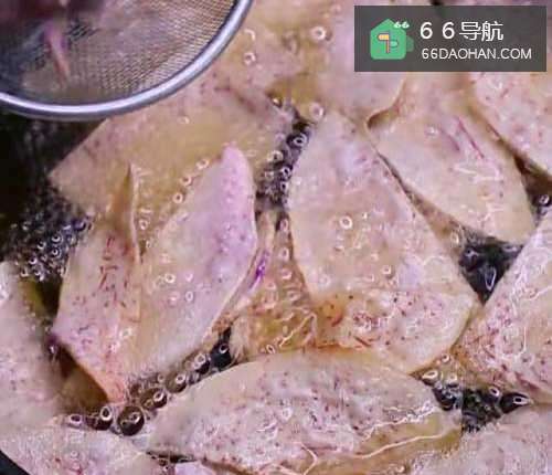 芋头片越薄越脆 炸前必须冲洗掉淀粉沥干水份再炸就不怕粘在一起