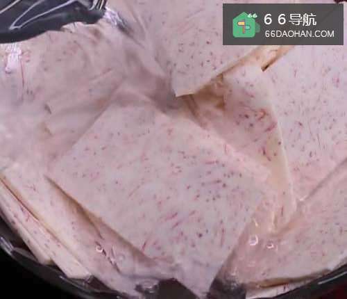 2然后把切好的香芋片,清水浸泡2次,沥干水分。