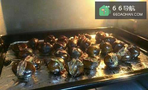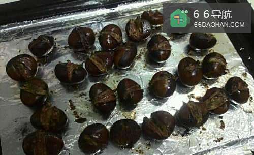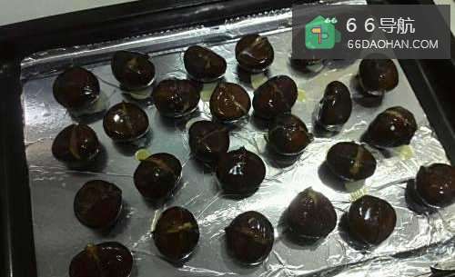 4蜂蜜和温水调和,刷栗子,开口处多刷,再烤10分钟