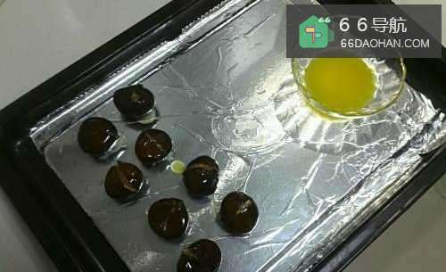 2烤盘铺锡纸,晾干栗子刷满黄油