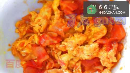 6看到变色后,就可以翻炒了,这时加入的切好的西红柿,进行翻炒,