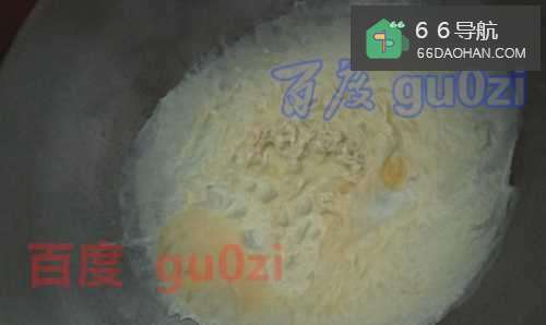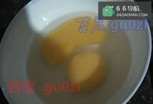 2将鸡蛋 2个,打开后,用筷子打匀,加入第1步准备的水,这此炒出来的鸡蛋比较松,口感更好,