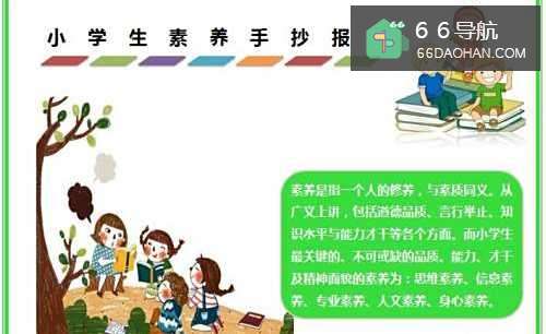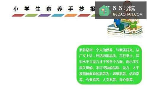 2在【小学生素养手抄报】标题的右侧处,画出画面丰富内容,如下图所示。