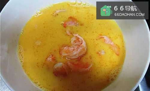 4补少许油,以中火将蛋与虾仁的混合液炒到凝固即可。