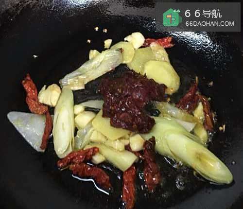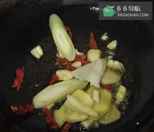 3锅里倒适量油,油热后把葱姜蒜、干辣椒倒进去爆香