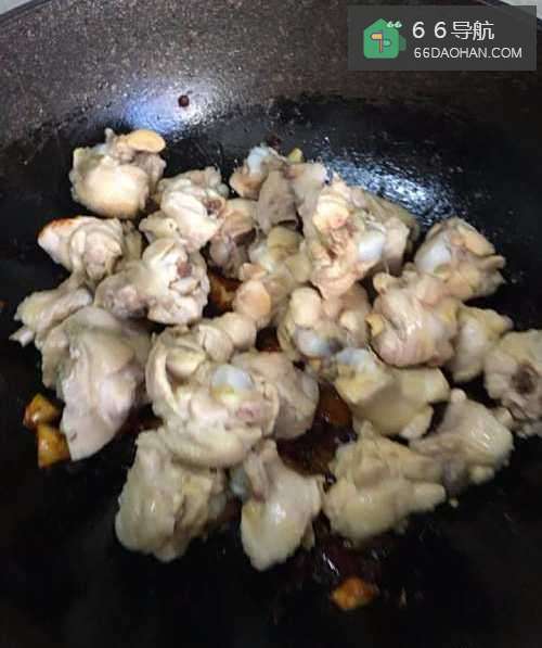 9翻炒片刻,加入能没过鸡肉的开始,开小火炖煮30分钟,再加入适量盐炒匀,最后大火收汁即可