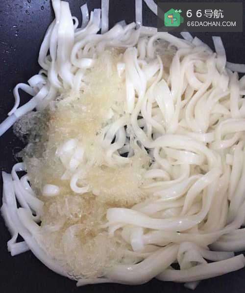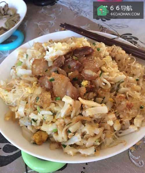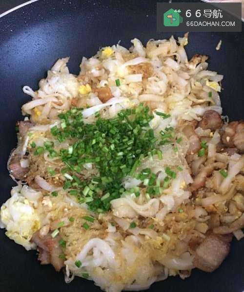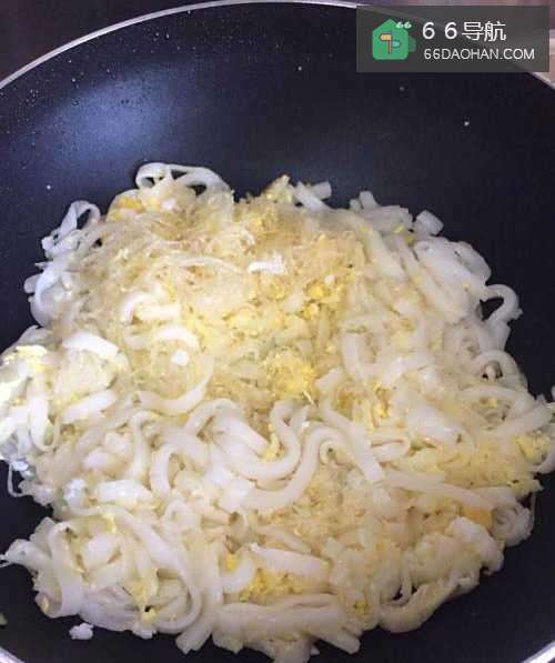4快速翻炒,让粉都沾上油之后就静置等粉丝热透,拨开中间,加点油,把鸡蛋打进去(或者提前把鸡蛋打散);