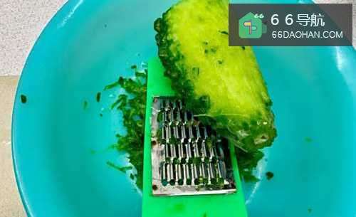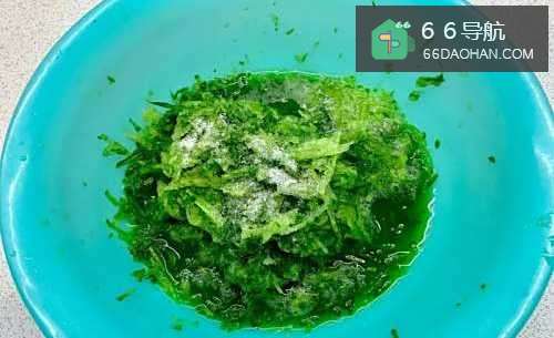 3刨下来的绿皮用盐腌制约5分钟去苦味后拧干水分备用