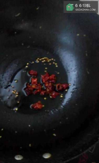 3在锅中放入花生油,微热,加入辣椒,用小火炒香
