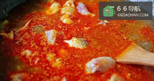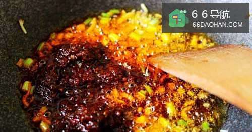 8小火慢慢翻炒至出红油和香味后,倒入适量清水煮沸。