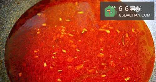 15再撒上辣椒粉以后,炒锅中烧热后加入剩下的100克花生油烧热后、浇到上面。