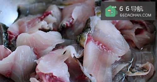 2把鱼头和鱼排放在一起,把鱼肉片单独放在一起。