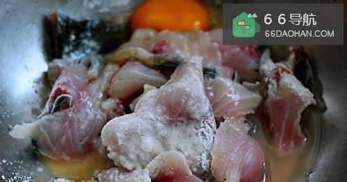 3把鱼肉片里加入麻辣水煮鱼的腌制粉,再打散一枚鸡蛋和搅拌均匀。