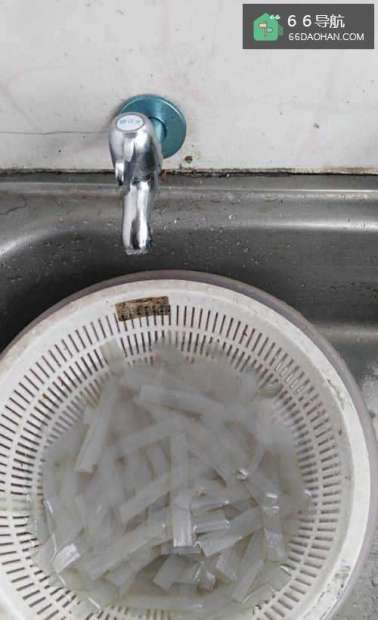 把洗好的粉皮放在漏盆里晾干。