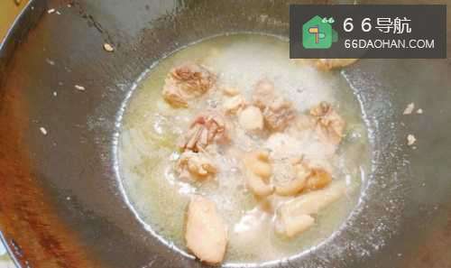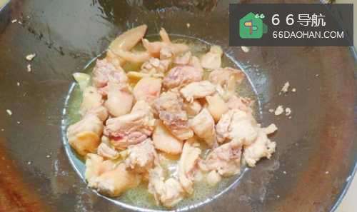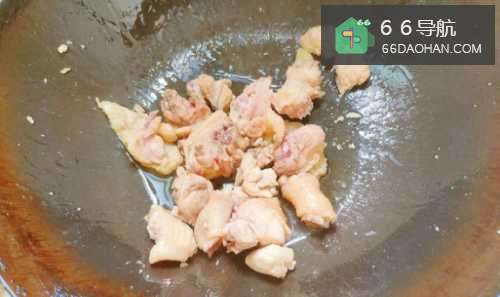 首先,我们起锅烧油,放入切好的鸡肉翻炒变色;