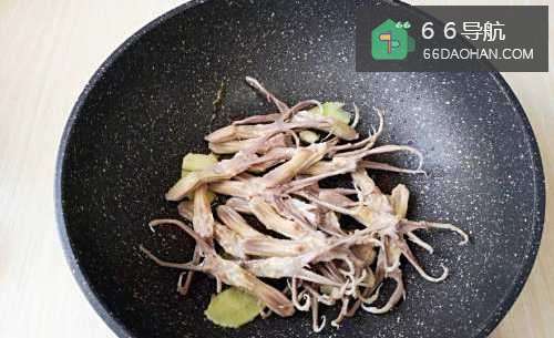 将鸭舌焯水,冷水入锅,大火烧开,煮2分钟,捞出用温水冲,再淋干水分备用。