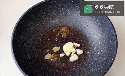 3待冰糖融化成为褐色时加入切好的姜片,蒜瓣炒香。