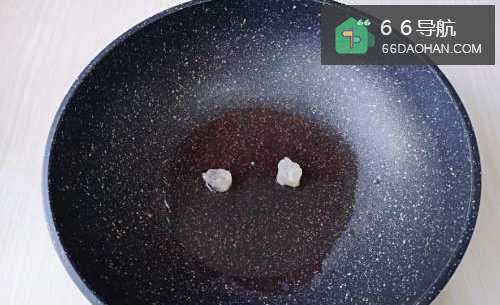 2锅中加入食用油,加入冰糖,小火将冰糖融化。