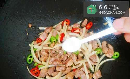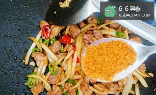 8撒入烧烤粉,翻炒均匀后便可出锅装盘。