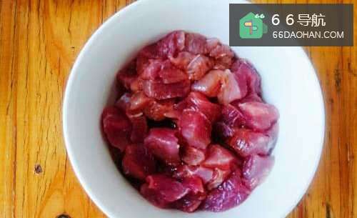 1鸭胸肉切丁,用料酒和生抽腌制10分钟。