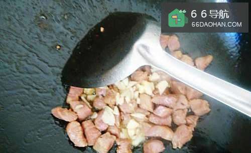 4热锅倒油,放入腌好的鸭胸肉大火煸炒至变色。