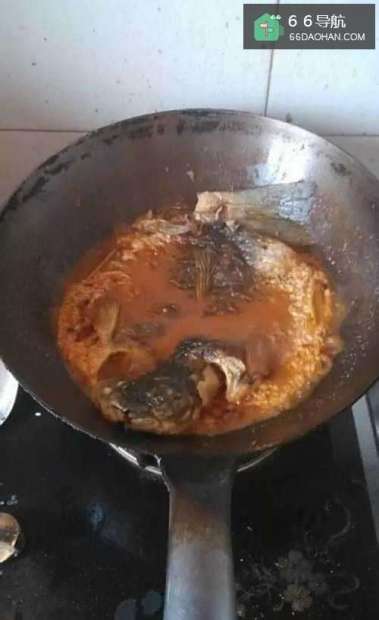 4倒入食用油,蒜沫,花椒,将麻辣鱼底料与豆瓣酱,在锅翻炒下,将鱼放入锅中,倒入清水,水位刚刚盖住鱼身,大火烧开,洒入一勺鸡精,掉点酱油上色,至小火烧15分钟用筷子插入鱼身最厚的部分,轻松插入即熟