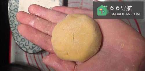 3掐一段面团揉成小面团,双手拍上粉,把面粉拍在面团上面。