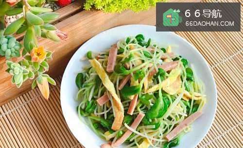 鲜香脆嫩的“火腿鸡蛋炒黑豆苗”就做好了,碧绿嫩黄配淡红,色泽娇艳,味道鲜香,怎么样?做法看起来是不是超级简单?聪明如你,一看就会。