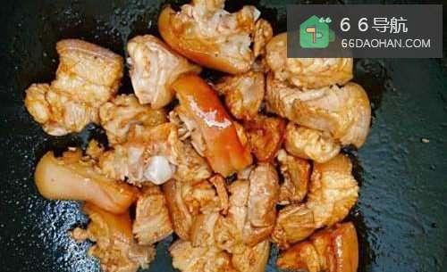 4热锅倒1汤匙油,把冰糖放下去,不停的搅拌,小火慢慢炒出焦糖色,注意油温不要过热,不然炒出来的糖会有段海微微的焦苦味。