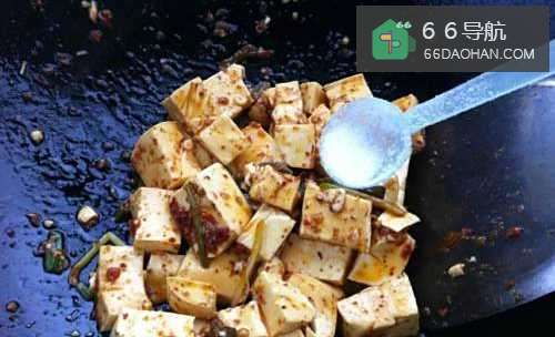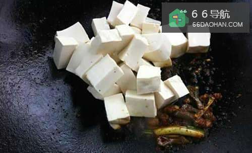 5倒入豆腐一起煸炒,翻炒豆腐的时候动作要轻一些,以免豆腐翻炒碎了。