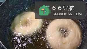 9炸甜甜圈不要着急翻动,一面金黄之后再翻另一面继续炸。