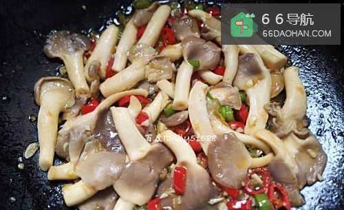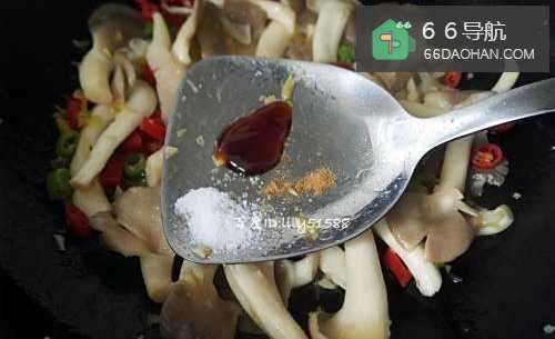 5平菇炒软之后,加入少许盐,五香粉,蚝油调味。