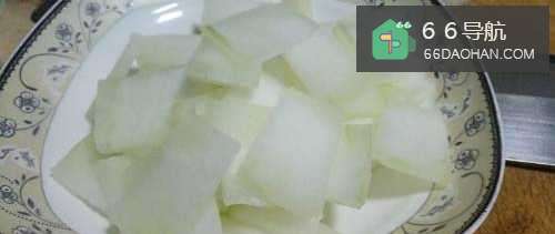 1、先把冬瓜去皮去囊,切成均匀的薄片。