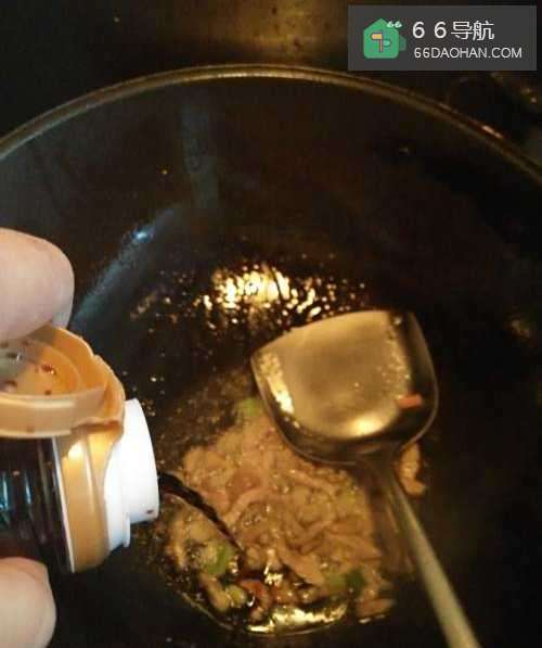 4往肉丝中倒入适量的酱油增加色泽和香味。