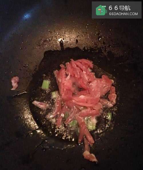 3将肉丝放入锅中煸炒,炒到肉丝成白色。