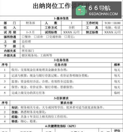 4工作说明书包含的是具体的岗位职责、工作内容和要求、还有工作权限等等。