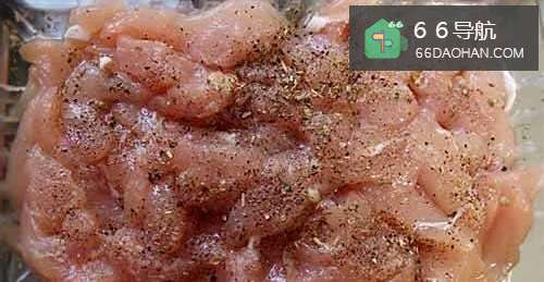 1.里肌切成小片,加入水、盐、义式香料及黑胡椒粒拌匀,腌至少半小时