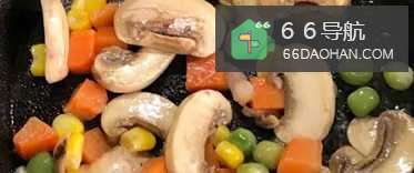 4.将玉米粒、胡萝卜丁、青豆,稍微滑炒,放一边备用。