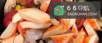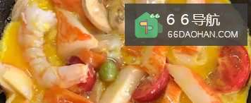 5往锅里浇点油,放入准备好的虾仁和蟹柳块炒香一下,加点油,再放入圣女果,炒香。