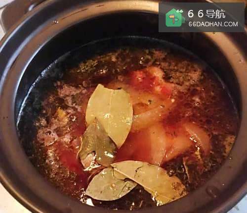5所有主配料加入炖锅,加入一勺半盐和一勺黑胡椒粉,开水和干红按1:2没过干料。