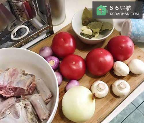 首先把牛尾、西红柿、洋葱和口蘑洗赶紧沥干水分备用。