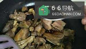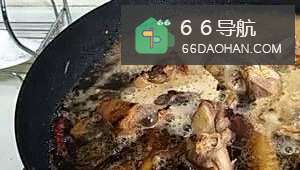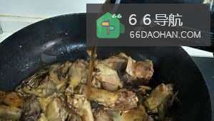 6炒至颜色变老、慢慢变深色、调入一瓶盖料酒;