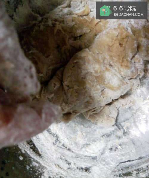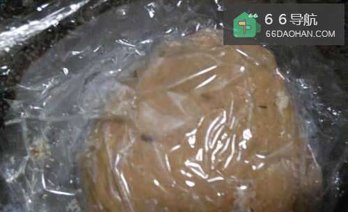 2再在红糖水中加入面粉200g,再把它们揉成团。