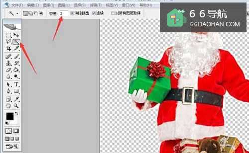3然后选择PS魔术棒工具,更改其 容差 的大小,还进行抠图,去掉白色背景图片,这些抠图的动作,全部在第二个复制的图层上进行。