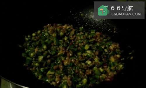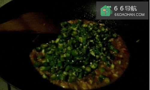 8这时啤酒也煮的变少了,加入青椒一起翻炒。